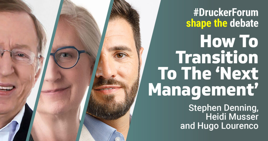 Note: To learn more about these ideas on making the transition to the ‘next management, join our workshop in Vienna on the day before the Drucker Forum, November 13, 2024 from 2.30 pm