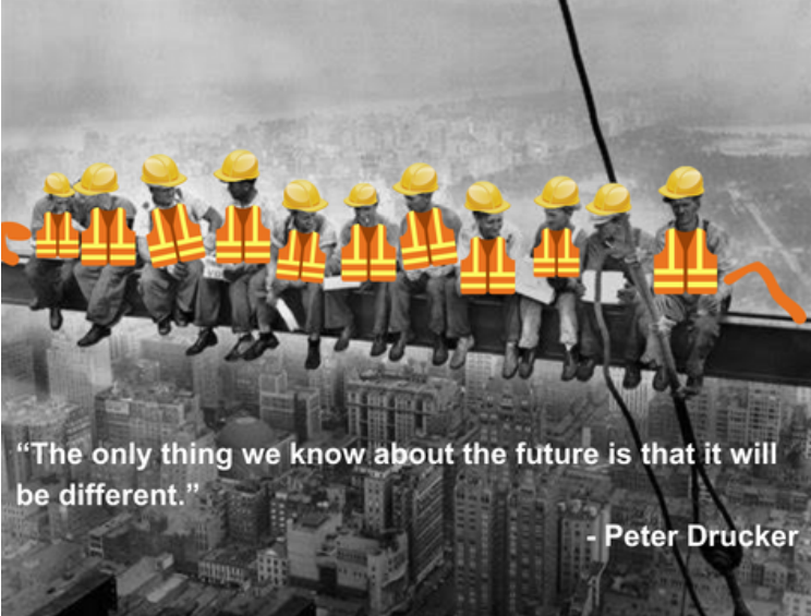 Individuals are not the only entities placed in the position of needing to redefine both their self-efficacy and their mission. It happens to institutions and industries also. Seven months ago I moved to New York City and joined a consultancy that oversees the development and construction of the Big Appleâs most iconic landmarks, such as Grand Central Station, Times Square, Bryant Park, and more. Physicist George West explains in his book Scale that cities are far more resilient and long-lasting than families, companies, or even governments.5 With this in mind, I observed my new environment with keen interest and was frequently reminded of one of NYCâs most famous pictures.