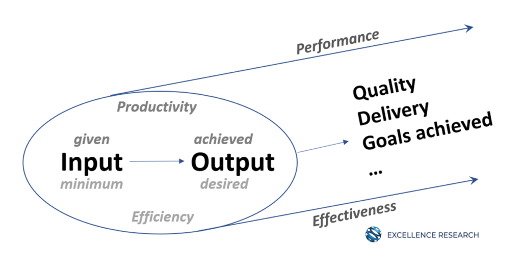 Also, we don’t have a common set of definitions for performance, productivity, efficiency, and effectiveness. These four terms have been used interchangeably to date.