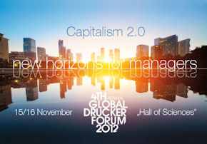 The Online Registration is closing on Monday, 10 AM- a limited number of on-site registrations will be accepted. In case you want to reserve one of these please contact s.herman@mindstream.beA Firework of Blog Posts during the past 2 weeks- from key speakers and supporters.Please visit and comment - we will reference and tweet important comments! Roger L. Martin, Dean Rotman School of Business, The Gaming of Games http://www.druckerforum.org/blog/?p=190 Umair Haque, Director Havas Media Lab - Is a Well Lived Life Worth anything? by Umair Haque http://www.druckerforum.org/blog/?p=229 Rick Wartzman, Executive Director The Drucker Institute - Is there really a movement building to counter "Maximizing Shareholder Value" http://www.druckerforum.org/blog/?p=220 Adrian Wooldridge, Management Editor The Economist - Improving Shareholder Capitalism by http://www.druckerforum.org/blog/?p=203 Andrew Hill, Management Editor FT - Going for Good Growth by Andrew Hill http://www.druckerforum.org/blog/?p=259 Lynda Gratton, Professor of Management Practice, London Business School - Precious competencies http://www.druckerforum.org/blog/?p=211 Steve Denning, Author and Forbes Management Blog - The Revolutionary Tenets of Management 2.0 http://www.druckerforum.org/blog/?p=178 Paradox Management - by Stephen Rhinesmith http://www.druckerforum.org/blog/?p=154 Trust Is Dead. Long Live Trust! - by Tammy Erickson http://www.druckerforum.org/blog/?p=264 Who will participate in the Forum- please see an excerpt of the participants list with company, function and country.Find Important Books for the Forum OnlineBookshop MANZ will present a selection of publications regarding the GPDF at the forum site. You may order or reserve the speaker's and chairs' publications under Speakers 2012. Find all relevant titles of and about Peter Drucker under Primary and Secondary Literature. |