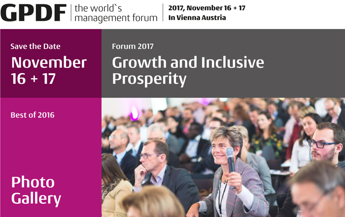 Dear Reader, The focus of this final Newsletter for 2016 is the output of the Drucker Forum 2016. So you will find access to various resources (photo gallery, podcasts, selected videos, and thought leadership documents). Note that full access to videos and presentation material is exclusively reserved for participants in the Forum and members of the Peter Drucker Society Europe. We welcome new institutional or individual members – in case of interest please check out this contact. We received excellent feedback from the conference survey, with an overall satisfaction rating of 96% 'excellent' or 'good' from a sample of 30% of the participants. At the same time each conference is a learning opportunity, and be assured that we shall make full use of the constructive qualitative input we have received for future improvement. As we close out the Forum 2016 we are happy to announce the Global Peter Drucker Forum 2017 under the theme of Growth and Inclusive Prosperity. You will find a short abstract here. Mark your calendar for November 16 and 17 2017! I should like to take this opportunity to wish to you and your families a Merry Christmas and a happy, healthy and prosperous New Year. Thank you for your interest in the Drucker Forum and hoping to see you at one of the upcoming events. With regards and good wishes Richard Straub & the Drucker Forum Team |